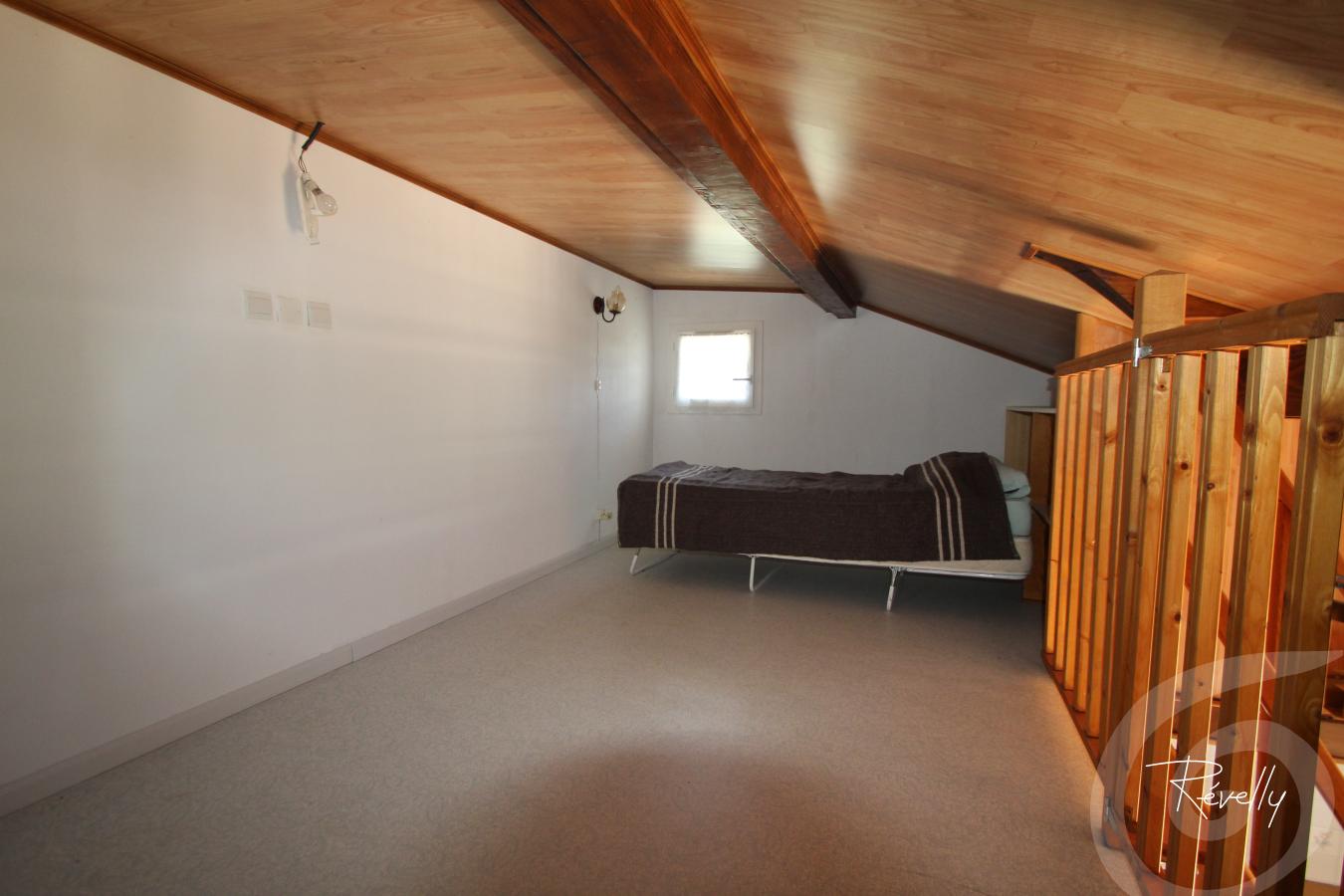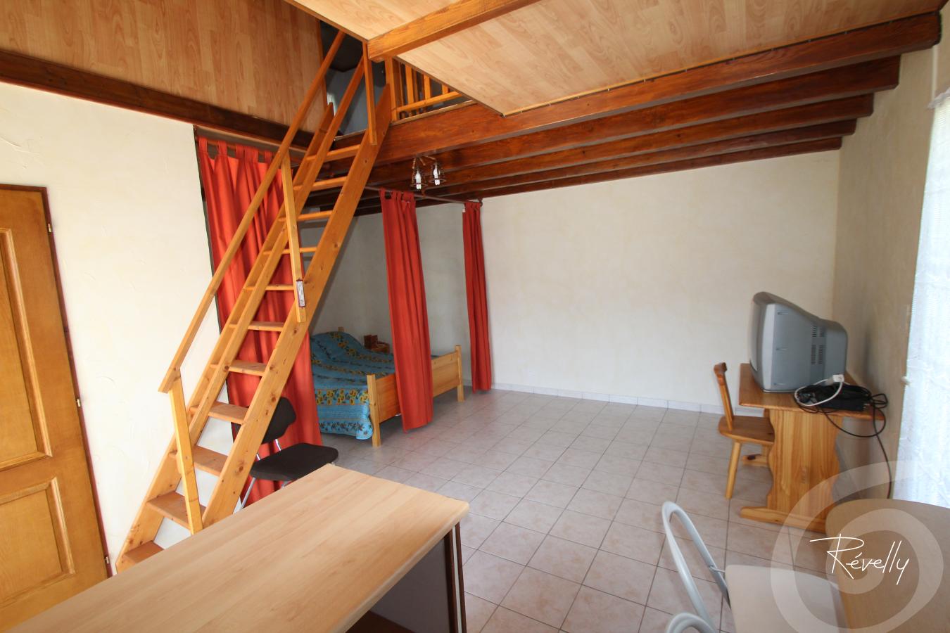 A l'étage : appartement de type studio ( 30 m² + mezzanine sous-pentée de 14 m²<1m80 ) composé d'une pièce à vivre avec coin nuit, terrasse panoramique, 1 salle d'eau avec wc et un espace couchage en mezzanine