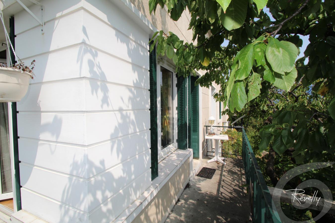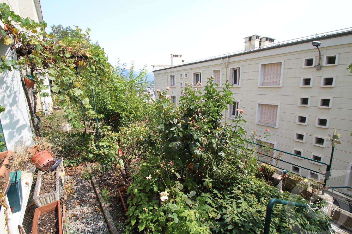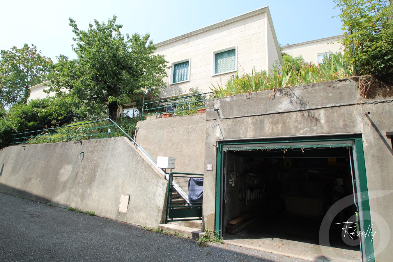 Terrain en déclivité végétalisé agrémenté d'un magnifique cerisier, garage fermé de 13,08 m² en annexe