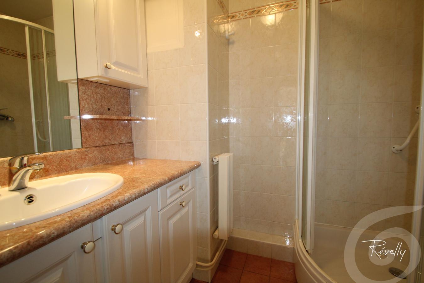 Hall d'entrée, séjour de 26,50 m², cuisine indépendante entièrement équipée s'ouvrant sur véranda, cellier, belle chambre avec placard, salle d'eau, wc
