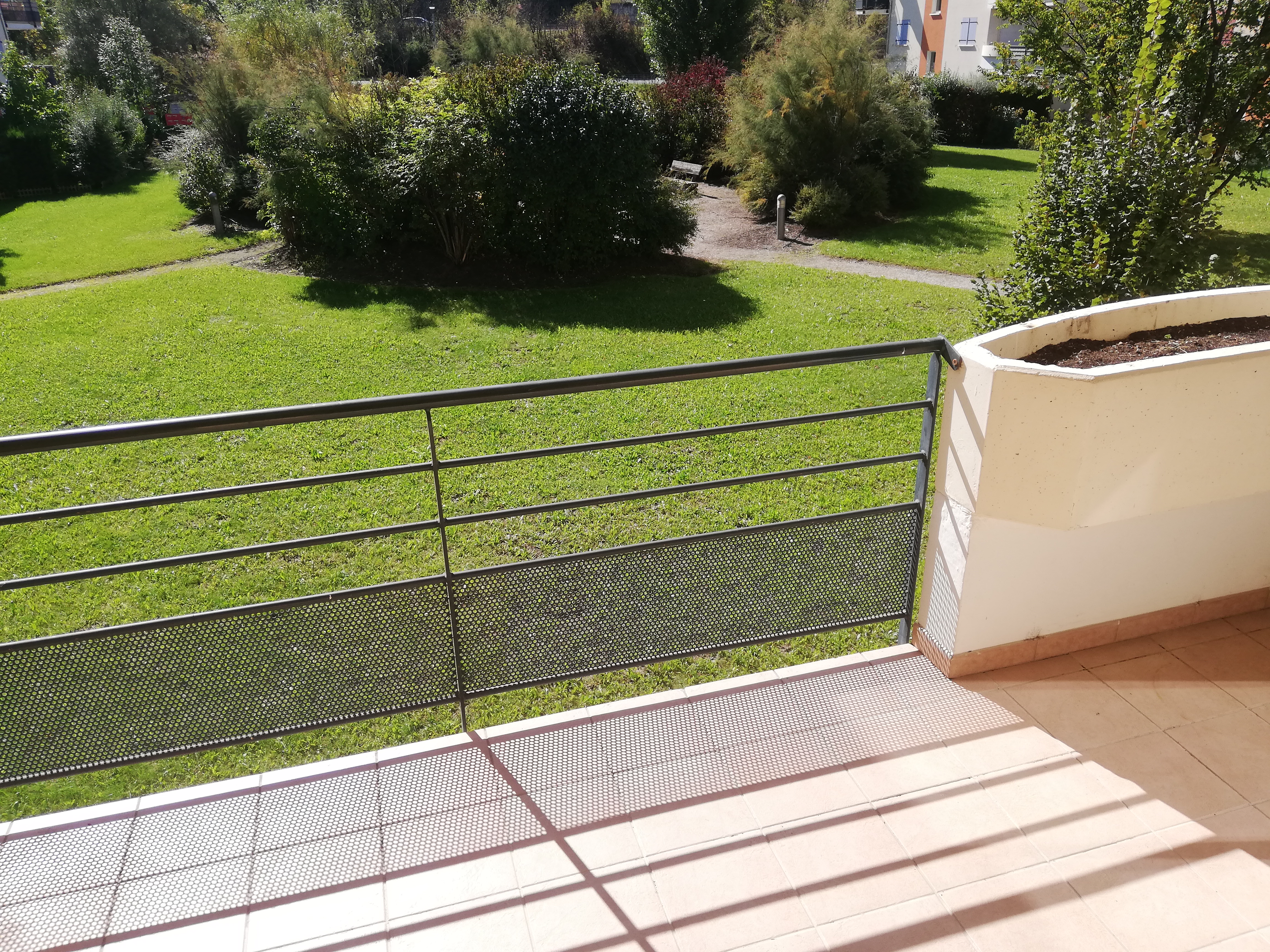 à découvrir dans un harmonieux petit ensemble résidentiel avec îlot de verdure, ce T3 avec terrasse, cave et parking privé..