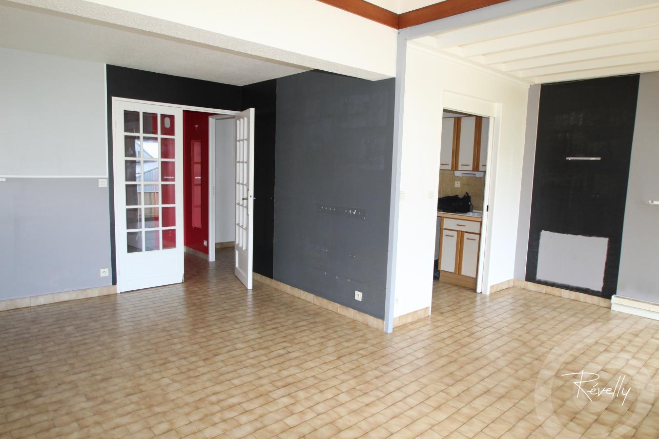 Hall d'entrée, pièce de vie avec espace cuisine ouverte sur belle terrasse exposée Sud/Ouest, 3 chambres, mezzanine, wc, salle de bains et nombreux rangements