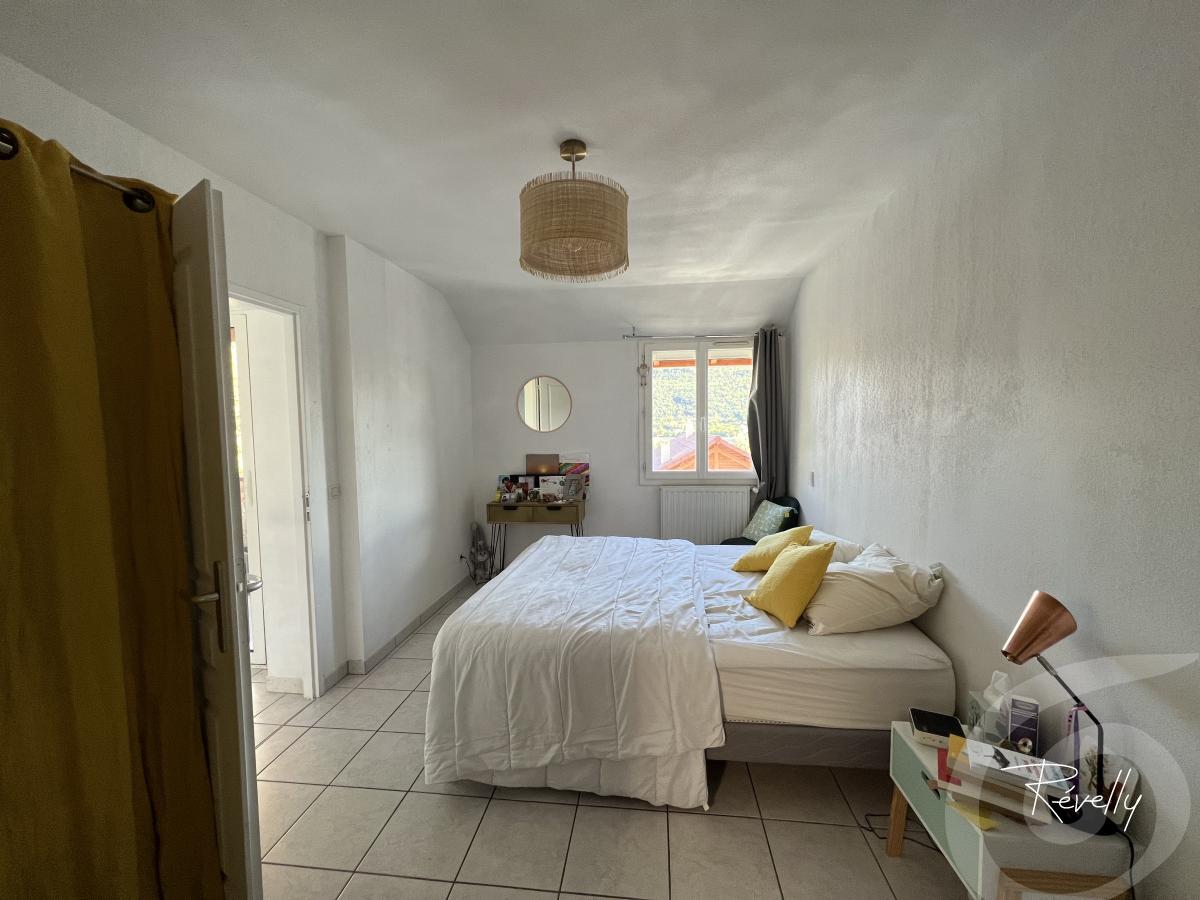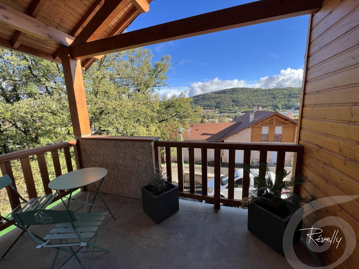 A l'étage : séduisante pièce à vivre s'ouvrant sur terrasse panoramique plein sud et sur un jardinet intimiste à l'arrière, cuisine ouverte, 1 vaste chambre avec salle d'eau privative, wc