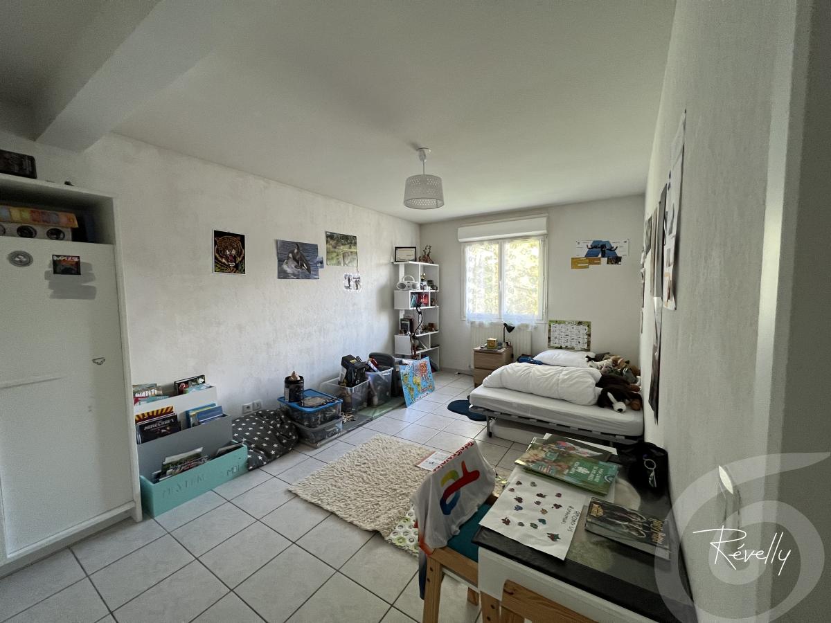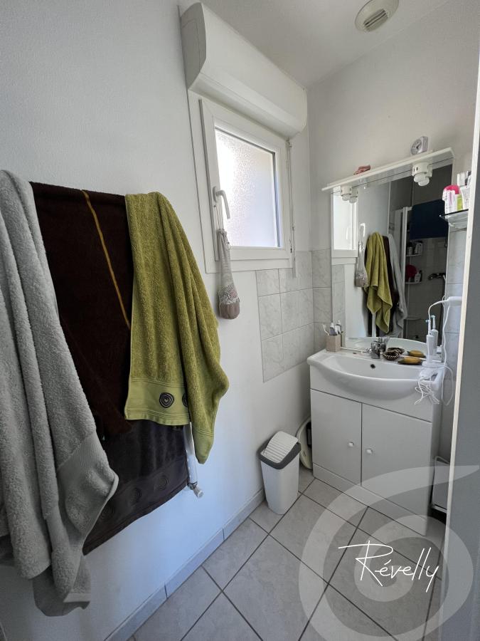 En rez-de-chaussée : hall, 2 chambres dont une surdimensionnée, salle de bains, wc, buanderie et garage